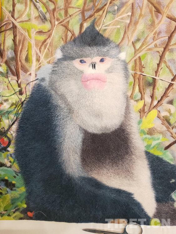 圖為(wei) 當地居民的滇金絲(si) 猴刺繡作品,表現了當地居民對滇金絲(si) 猴的喜愛