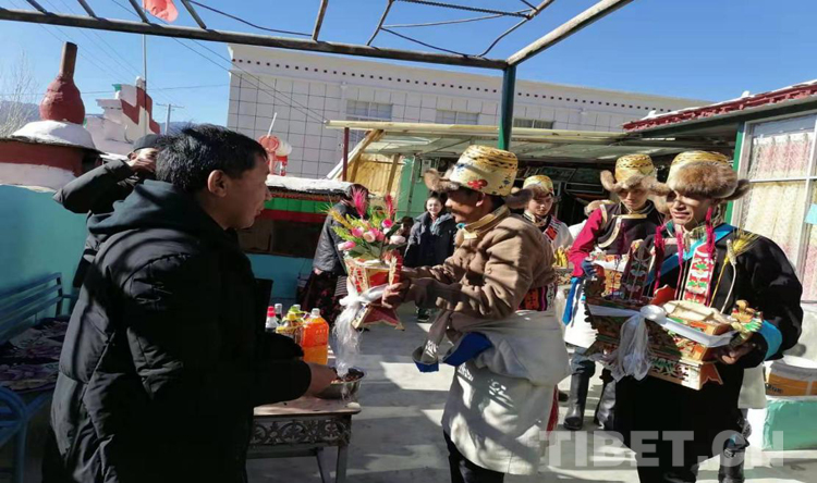 初一一大早,加查縣加查鎮紮西定崗全村人穿上節日的盛裝,舉(ju) 行過年團拜會(hui) 。大家互道“羅薩紮西德勒”,敬“切瑪”敬“酒”,大家有說有笑,處處充滿著新春的喜悅。
