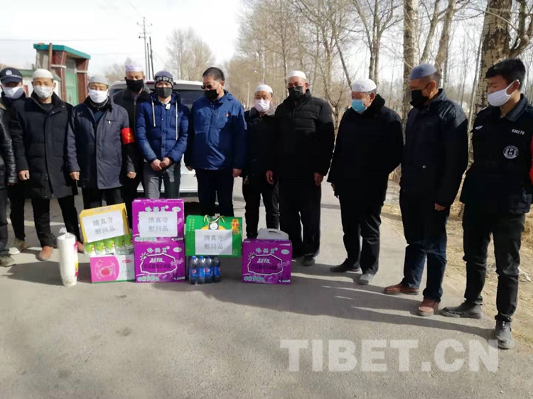 圖為(wei) 都蘭(lan) 縣香日德鎮中莊清真寺民管會(hui) 慰問防疫卡點執勤人員