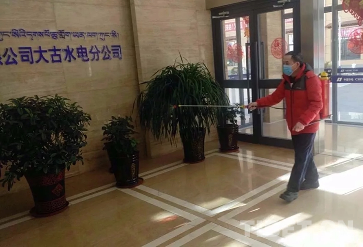 圖為(wei) 工作人員正在公司進行消毒 圖片由華電西藏能源有限公司提供