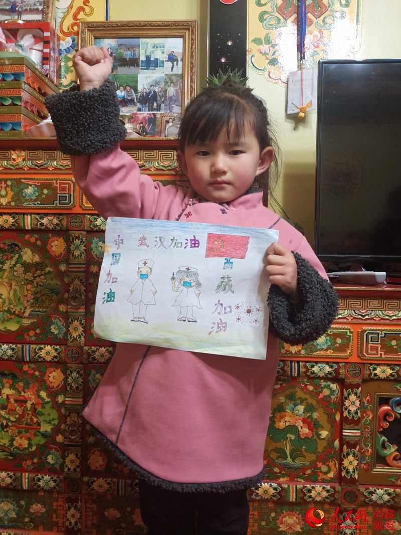 圖為(wei) 西藏自治區日喀則市白朗縣雙語幼兒(er) 園的小朋友為(wei) 武漢加油 圖片來源:人民網西藏頻道