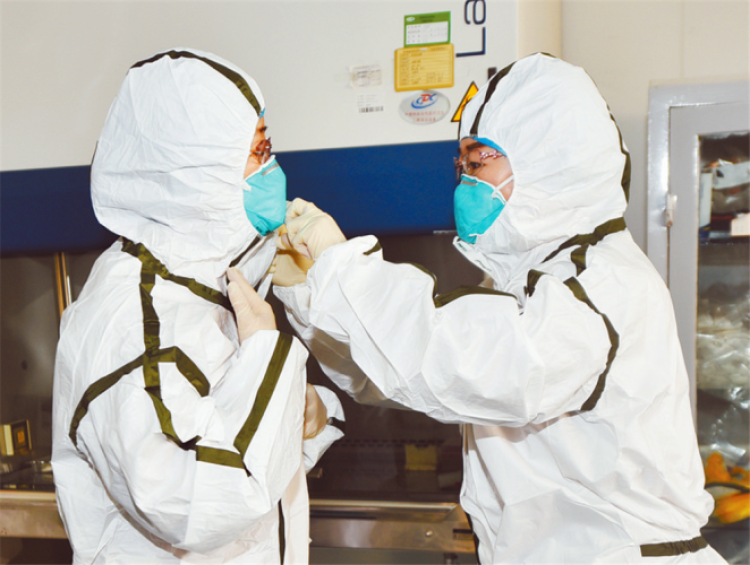 圖為(wei) 青海省疾病預防控製中心醫務人員穿戴醫用防護服 圖片來源:青海日報