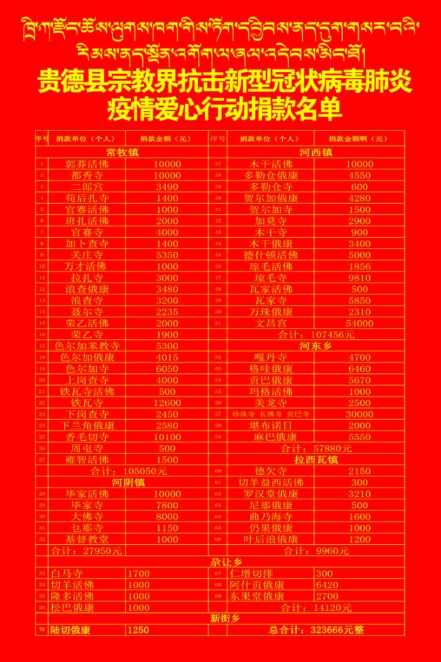 青海省貴德縣佛教界開展“同舟共濟獻愛心、眾誌成城抗疫情”捐款活動