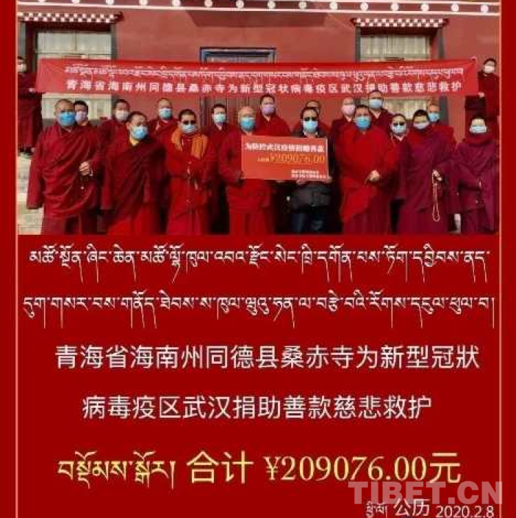 青海省海南藏族自治州同德縣桑赤寺捐款情況 根恒卓瑪供圖