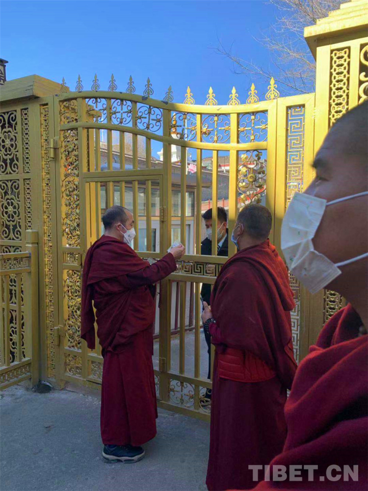 春節期間,青海省各地藏傳(chuan) 佛教寺院由往年人流密集的祈福敬香模式轉入“閉關(guan) ”模式。各寺僧人在寺祈願國泰民安、祛災滅疫。