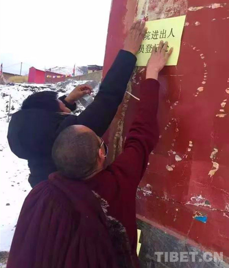 圖為(wei) 果洛藏族自治州內(nei) 寺廟張貼公告 圖片來源:果洛統戰公眾(zhong) 號