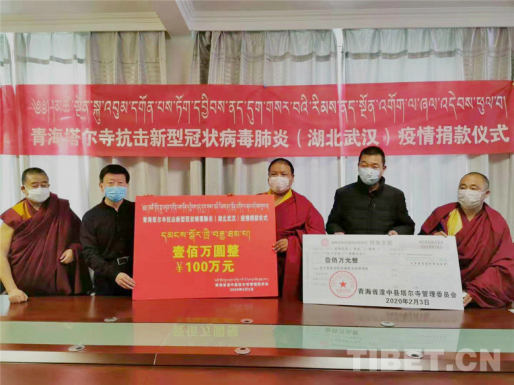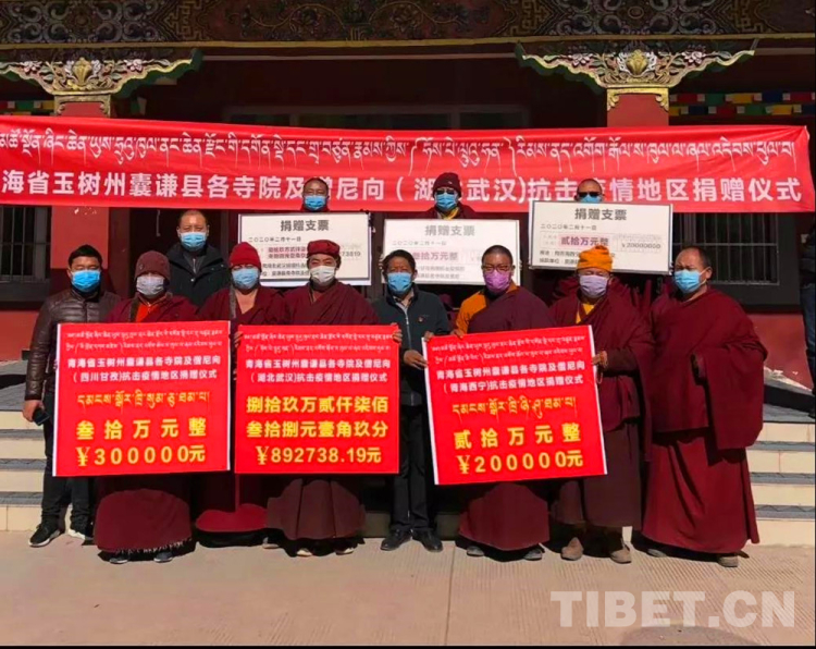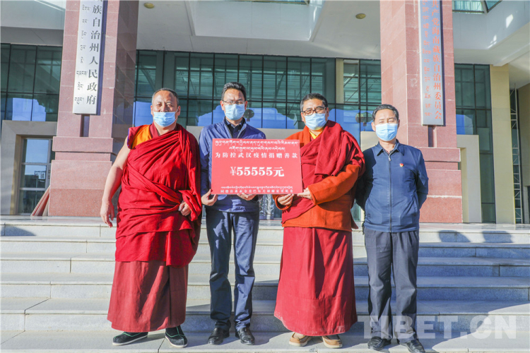 圖為(wei) 桑赤寺為(wei) 武漢疫情防控捐款5.5555萬(wan) 元 圖片來源:青海統戰公眾(zhong) 號