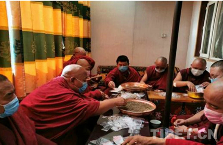 圖為(wei) 尖木達寺僧人製作藏藥丸圖片來源:青海統戰公眾(zhong) 號