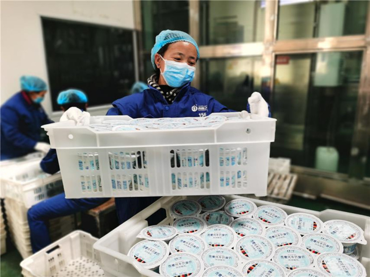 圖為(wei) 工人們(men) 正在搬運生產(chan) 好的犛牛酸奶 圖片來源:經濟日報 攝影:代玲
