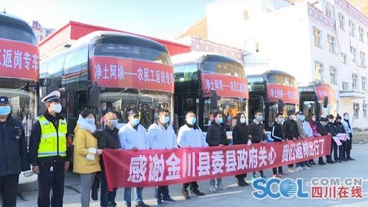 其中,為(wei) 實現疫情防控和經濟發展兩(liang) 不誤,四川省阿壩藏族自治州委州政府抓實做細農(nong) 民工返崗複工服務工作。從(cong) 2月18日起,阿壩州在13縣(市)開啟了“春風行動”農(nong) 民工返崗專(zhuan) 車行動。截至2月22日,累計開行免費專(zhuan) 車36輛,運載732名農(nong) 民工返崗。
