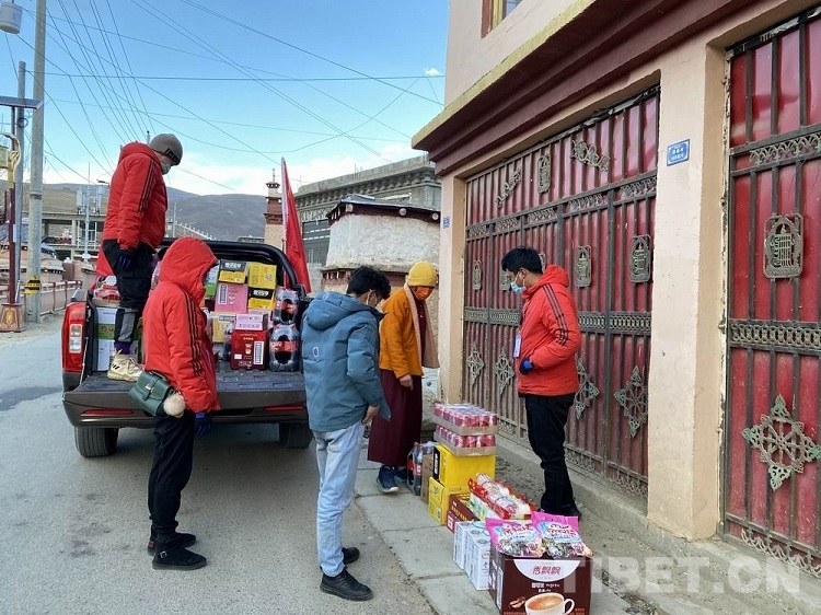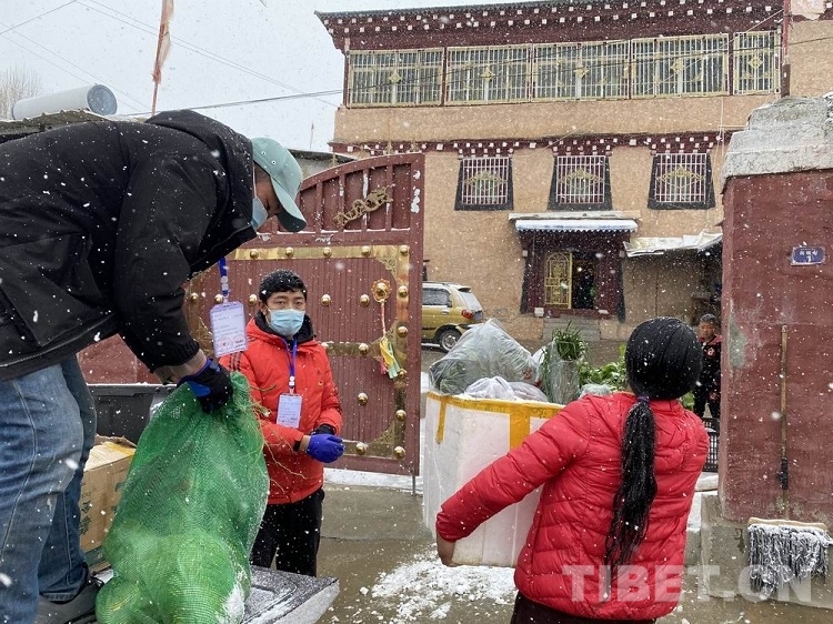 圖為(wei) 理塘團縣委“青年突擊隊”風雪中免費跑腿為(wei) 抗疫“宅家”群眾(zhong) 送物資上門