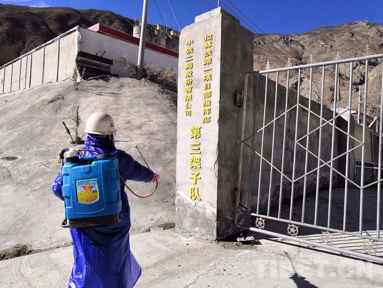 圖為(wei) 中鐵二局拉林鐵路項目部工作人員對工作區周圍進行消毒 圖片由中鐵二局拉林鐵路項目部提供