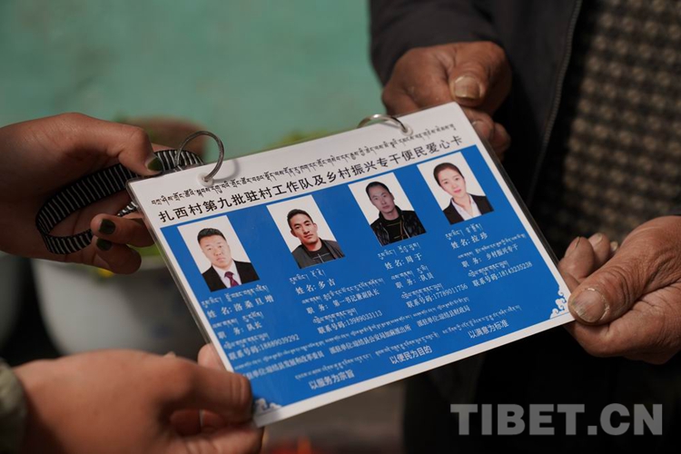 “請您開開門,我們(men) 是紮西村第九批工作隊的工作人員,我們(men) 來給您掛‘卡’啦!”工作人員敲響了村民次仁曲珍的家門,他們(men) 所說的這張卡就是便民愛心卡。