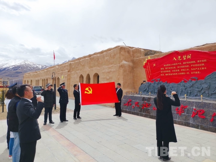 入黨(dang) 宣誓儀(yi) 式在吉絨隆窯洞活動室外舉(ju) 行,4名“火線入黨(dang) ”同誌麵對鮮紅的黨(dang) 旗,進行了莊嚴(yan) 的入黨(dang) 宣誓。