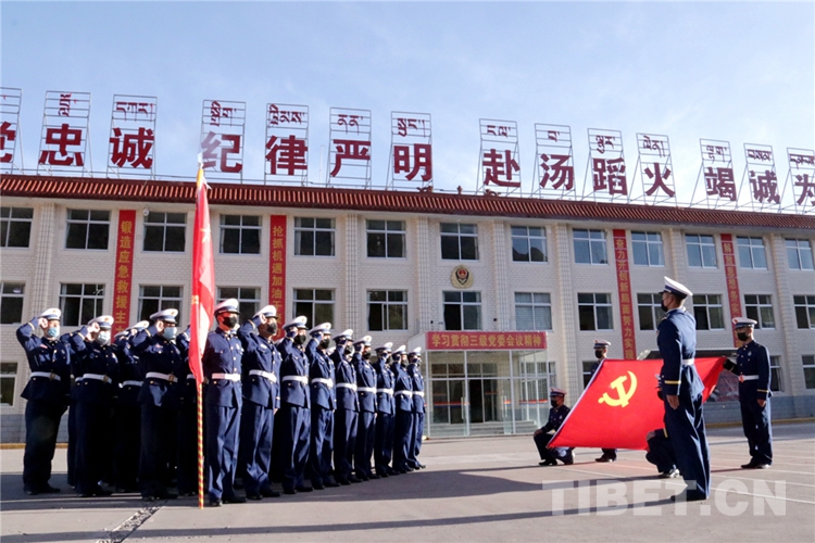 圖為(wei) 西藏昌都市卡若區森林消防中隊全體(ti) 黨(dang) 員重溫入黨(dang) 誓詞