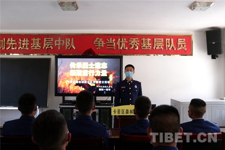 圖為(wei) 西藏昌都市卡若區森林消防中隊黨(dang) 小組會(hui) 上緬懷英烈