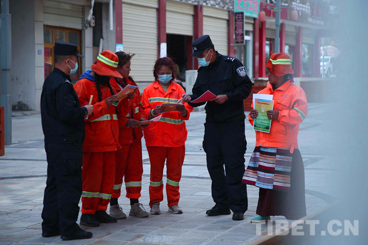 圖為(wei) 吉隆出入境邊防檢查站移民管理警察為(wei) 駐地吉隆鎮環衛工人宣講國家安全法律知識,普及在維護國家安全中公民的職責義(yi) 務。攝影:肖富貴