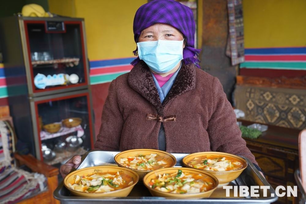 圖為(wei) 央金為(wei) 客人上菜 攝影:曲傑