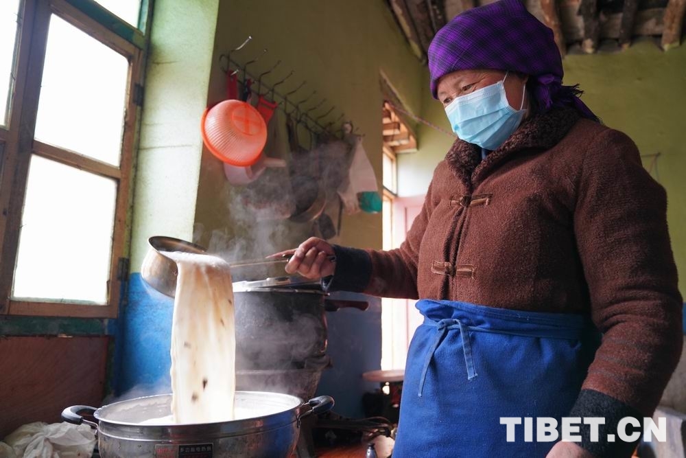 圖為(wei) 央金正在熬製甜茶 攝影:曲傑