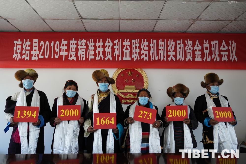 2020年3月26日,瓊結縣召開精準扶貧利益聯結機製獎勵資金兌(dui) 現會(hui) 議,嘎瑪旺堆作為(wei) 代表參加了會(hui) 議,同時拿到了2000元的獎勵資金。當時他說:“2017年11月,黨(dang) 的好政策讓我們(men) 一家摘掉了貧困戶的‘帽子’。今天領到了縣裏獎勵資金很激動,感謝黨(dang) 、感謝政府。”