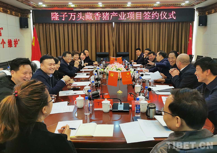 圖為(wei) 隆子萬(wan) 頭藏香豬產(chan) 業(ye) 項目簽約儀(yi) 式現場