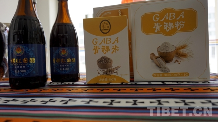圖為(wei) 西藏自治區農(nong) 牧科學院農(nong) 產(chan) 品開發與(yu) 食品科學研究所一樓展示區裏展示的青稞係列產(chan) 品:青稞紅曲醋、高γ-氨基丁酸青稞米、高γ-氨基丁酸青稞粉攝影:王媛媛