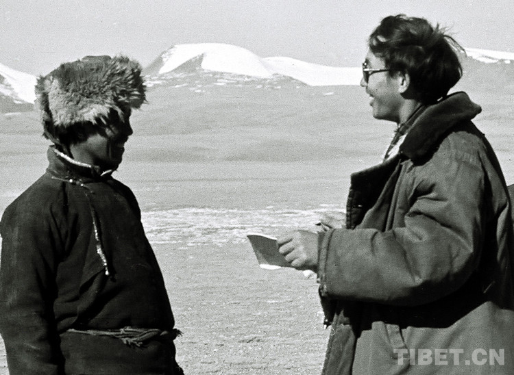 這是唐召明(右)第二次獨闖藏北無人區時在路途中采訪牧民群眾(zhong) 。(唐召明提供,1988年攝)