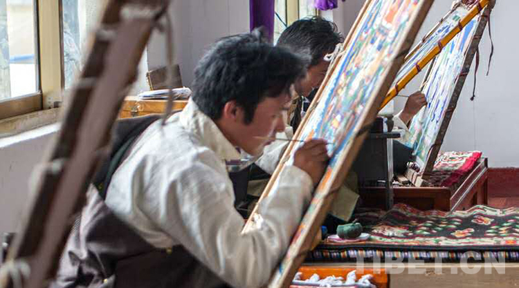 圖為(wei) 西藏金塔建設集團有限公司建立職業(ye) 學校,開展唐卡繪畫記憶教學 圖片由西藏金塔建設集團有限公司提供