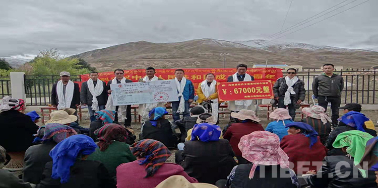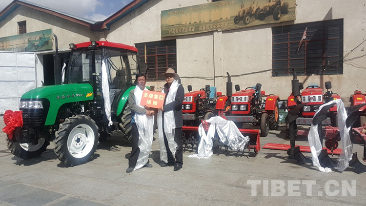 圖為(wei) 西藏聖雄實業(ye) 集團有限公司在薩迦縣雄瑪鄉(xiang) 吉堆村發放農(nong) 機具 圖片由日喀則市工商聯提供