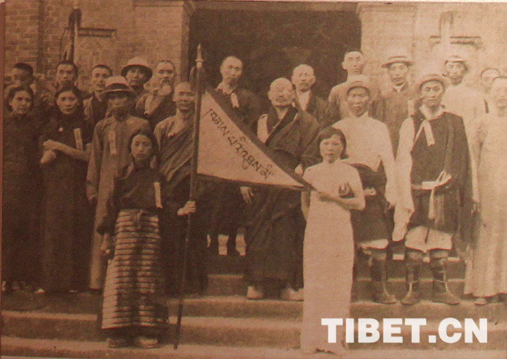 圖為(wei) 西康民眾(zhong) 代表團過渝赴武漢獻旗勞軍(jun) 時合影 圖片由喜饒尼瑪提供