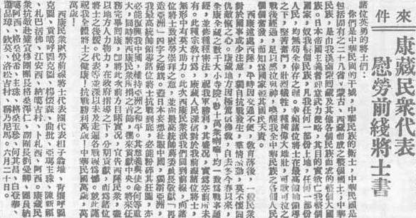 當年頗有影響的“西康民眾慰勞前線將士代表團”