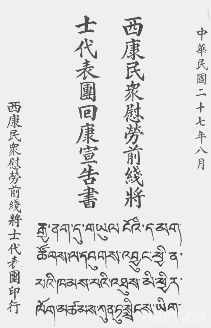圖為(wei) 《西康民眾(zhong) 慰勞前線將士代表團敬告將士書(shu) 》封麵 圖片由喜饒尼瑪提供