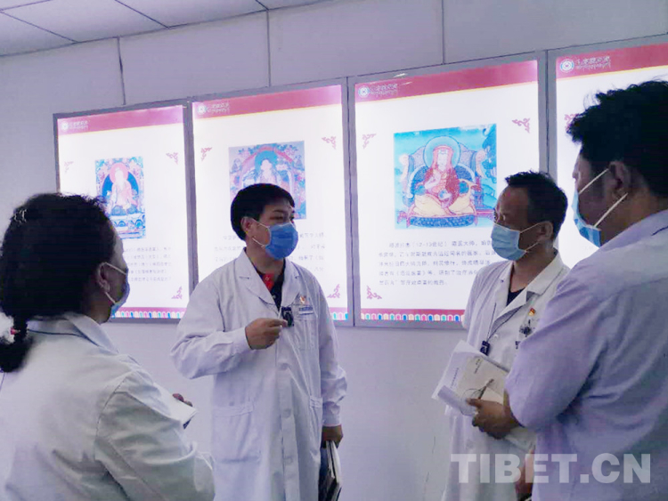 圖為(wei) 北京藏醫院黨(dang) 委副書(shu) 記、院長仲格嘉(左二)與(yu) 同事交流 攝影:王茜