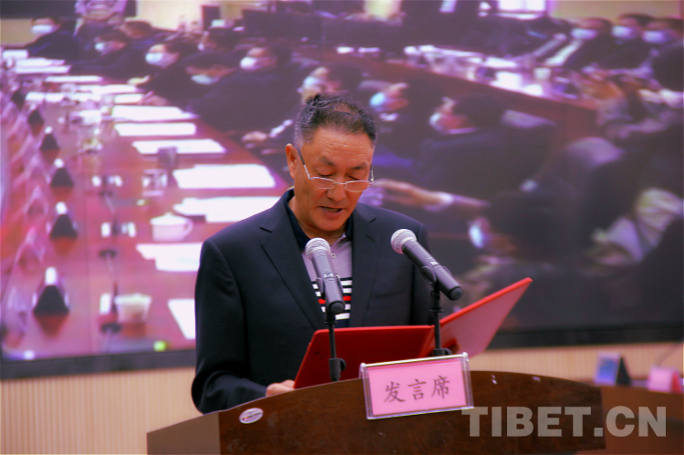 圖為(wei) 國家一級演員多布傑宣讀倡議書(shu) 攝影:趙二召