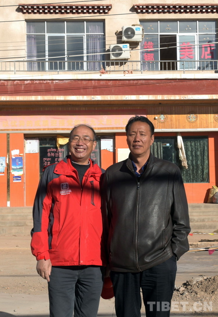 這是唐召明(左)與(yu) 那曲市副市長紮南(右)在雙湖縣城合影留念(唐召明提供,2019年9月20日攝)
