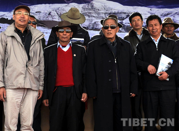 這是唐召明(左一)與(yu) 雙湖縣縣委書(shu) 記南培(右一)等領導在贈書(shu) 儀(yi) 式結束後合影留念。當日,唐召明所著的《走遍藏北無人區》一書(shu) 在雙湖縣舉(ju) 行了首發和贈書(shu) 儀(yi) 式(唐召明提供,2013年7月27日攝)