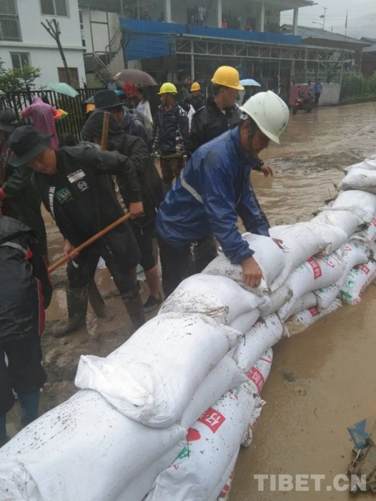 墨脫縣位於(yu) 西藏自治區林芝市,近期因連續強降雨,造成墨脫縣背崩鄉(xiang) 背崩村引發局部洪水。由於(yu) 山洪來得突然,村內(nei) 的排水道很快被衝(chong) 下來的泥沙和樹木堵塞,項目部組織班組隊伍冒著大雨幫助當地群眾(zhong) ,共同清理排水溝,同時用麻袋裝入本來施工用的沙子,形成一道防護堡壘,有效地阻止了洪水衝(chong) 入當地一層居民家中,將災害降到最低,保全了當地群眾(zhong) 的財產(chan) 安全。