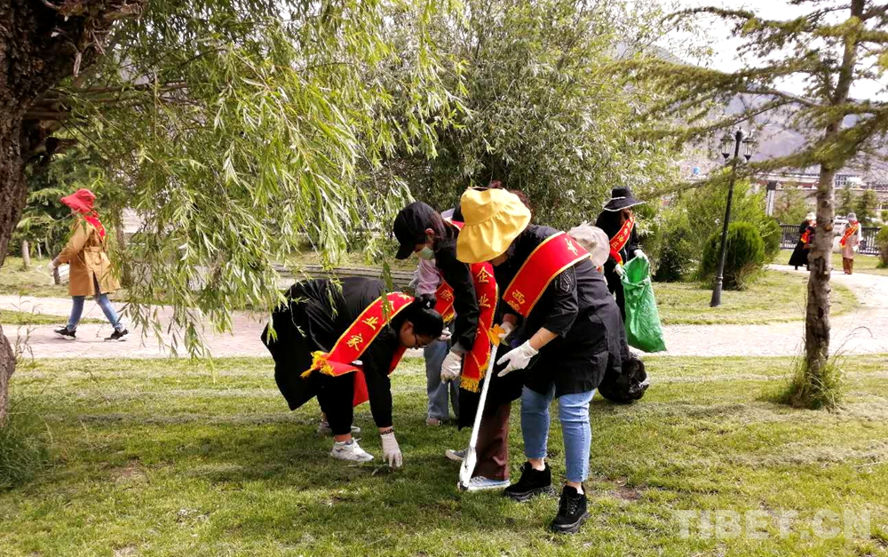 活動中,西藏婦女發展協會(hui) 、女企業(ye) 家協會(hui) 聯合黨(dang) 支部全體(ti) 黨(dang) 員開展了環保公益活動。(新利平台 記者/賈華加)