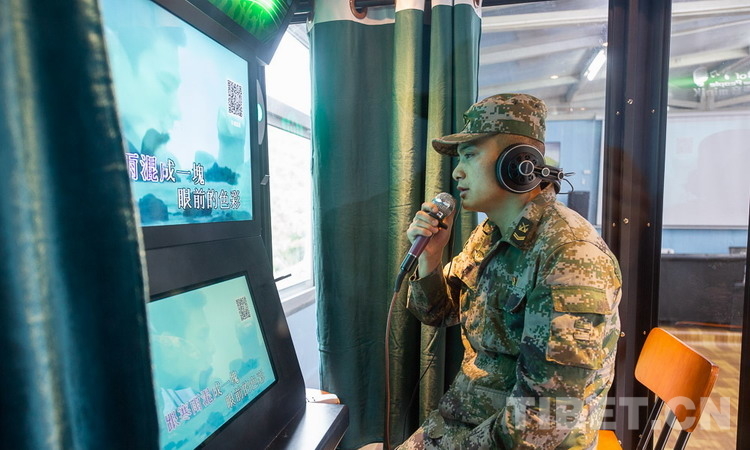 圖為(wei) 邊防官兵正在移動唱吧內(nei) 唱歌 攝影:趙耀