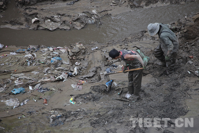 圖為(wei) 環衛工人正在為(wei) 實現“全域無垃圾”而進行深度清理