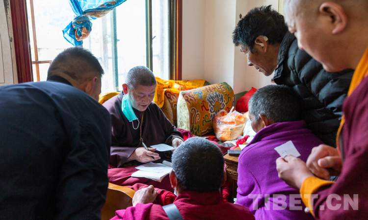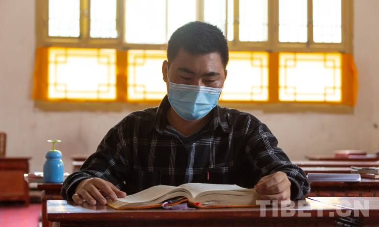 圖為(wei) 索朗江白正在誦讀《四部醫典》 攝影:趙耀