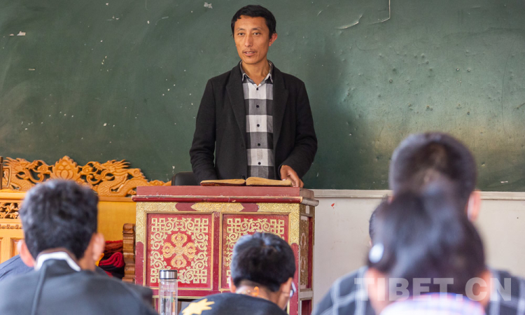 圖為(wei) 倫(lun) 珠正在課堂上為(wei) 學生授課 攝影:趙耀