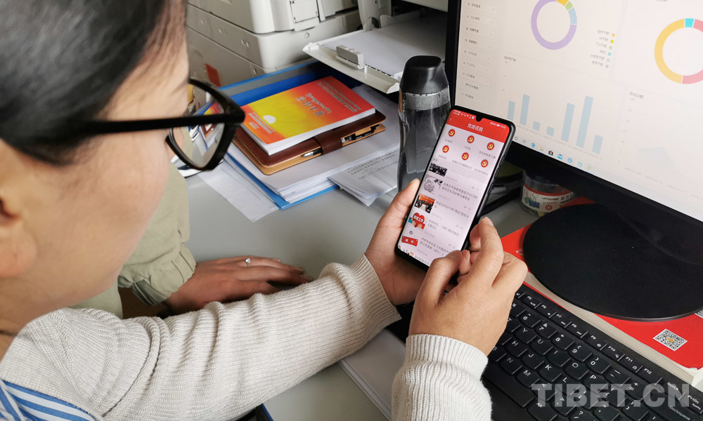 圖為(wei) 基層工作人員正在使用“紅色北鬥”智慧黨(dang) 建係統 圖片由北京援藏指揮部提供