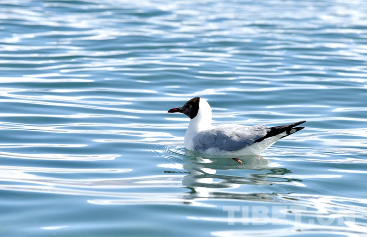 圖為(wei) 棕頭鷗在班公湖麵遊弋 攝影:王媛媛