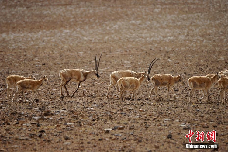 圖為(wei) 遷徙中的藏羚羊 圖片來源中新網