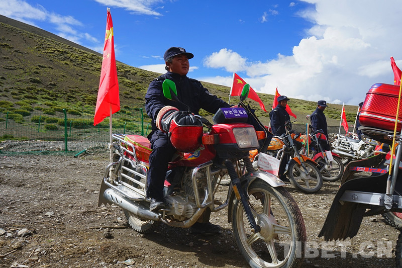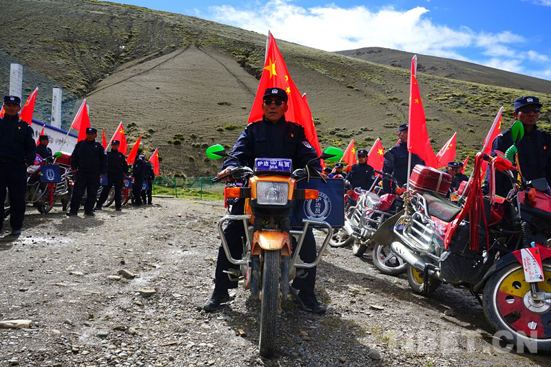 一麵麵顏色鮮豔的五星紅旗,一輛輛風格迥異的摩托車,這是護邊聯防隊巡查來了。17年來,這支隊伍與(yu) 當地邊境派出所的民警一道,守護著西藏自治區日喀則市薩嘎縣昌果鄉(xiang) 105公裏的邊防線。
