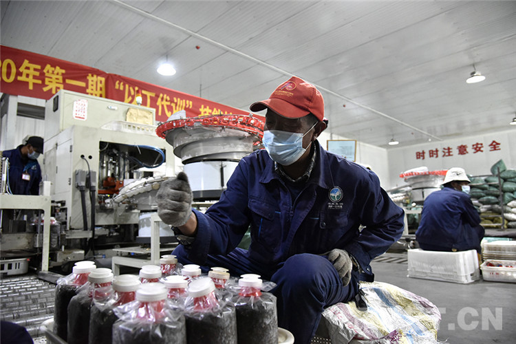 圖為(wei) 日喀則市珠峰一見則喜生物科技示範園區裝袋車間裏工人正在裝袋 攝影:王媛媛