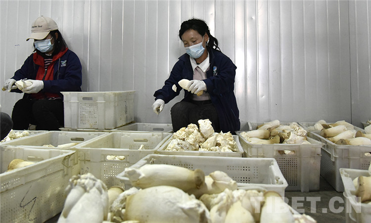 圖為(wei) 日喀則市珠峰一見則喜生物科技示範園區包裝車間裏工人正在包裝杏鮑菇 攝影:王媛媛