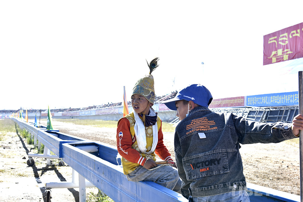 賽馬場上,看著同齡人在馬背上飛馳,拉巴桑珠不時給出建議:“要拽韁繩”“要打馬鞭”……他也在觀察同齡人駕馭馬匹的技巧,為(wei) 自己的比賽做好準備。