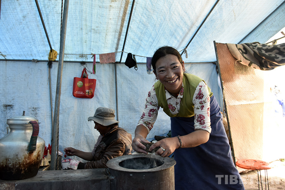 圖為(wei) 次供的妻子白瑪卓嘎在帳篷裏忙碌 攝影:王媛媛